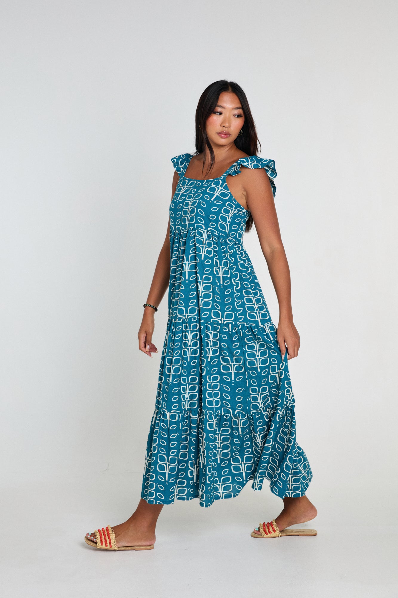 Our Amelie dress from our SUNDAR collection is a definite must for any wardrobe with a fun and frilly vibe!! Featuring a straight neckline, ruffled straps and has an A-line silhouette with a tiered design. Finished with hidden side pockets. Amelie is perfect for that weekend getaway, a relaxed day out and about or simple days spent lounging in the sunshine.