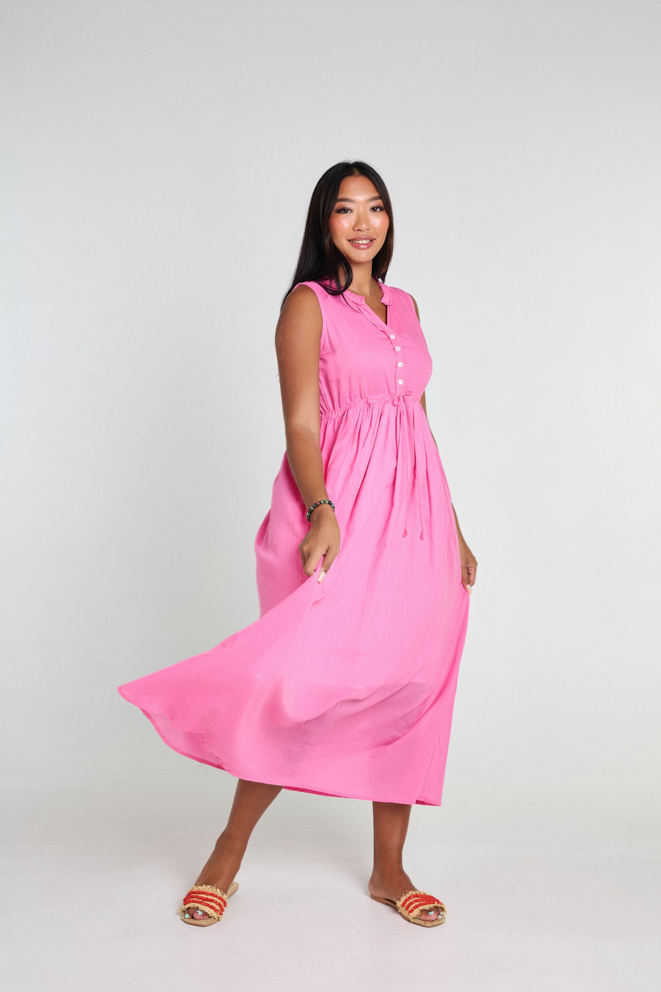 Our gorgeous Isabel dress from our SUNDAR collection is certainly that one style you want as part of your wardrobe!! Flattering pleated V-neckline with button down design and a drawstring waist for added shape. Finished with hidden side pockets. complete the look with you favourite sandal or wedge and you set for the weekend getaway or simple days spent lounging in the sunshine.
